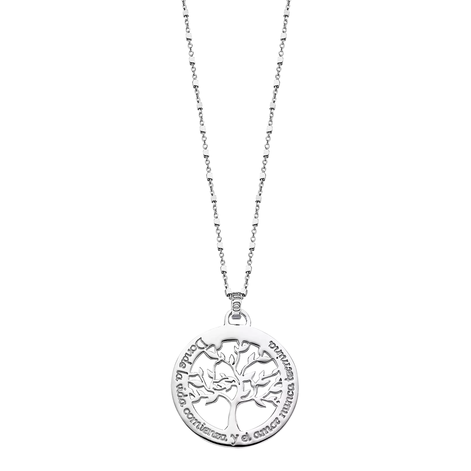 Symbole de force et d'harmonie, ce collier en argent 925 m/l de la collection Lotus Silver met à l'honneur le magnifique Arbre de Vie. Son pendentif finement travaillé, sublimé par des détails scintillants, représente l'équilibre, la croissance et le lien entre toutes les étapes de la vie. Intemporel et élégant, ce bijou délicat apporte une touche de sens et de raffinement à chacune de vos tenues.