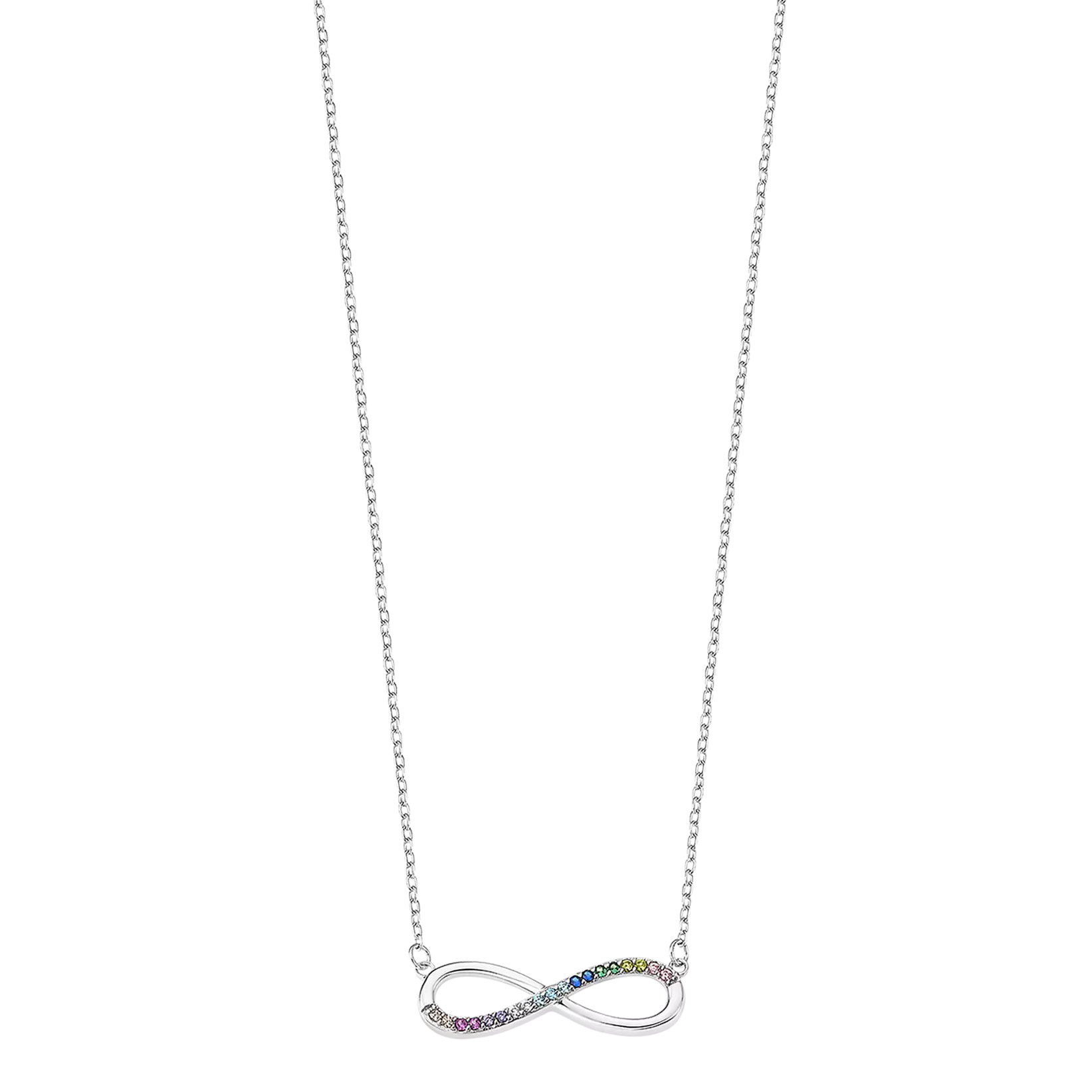 Apportez une touche de raffinement à votre style avec ce magnifique collier Lotus Silver en argent 925 m/l. Son pendentif délicat en forme de symbole de l'infini est sublimé par de fines pierres d'oxydes de zirconium multicolores scintillantes, pour un rendu à la fois moderne, féminin et intemporel.