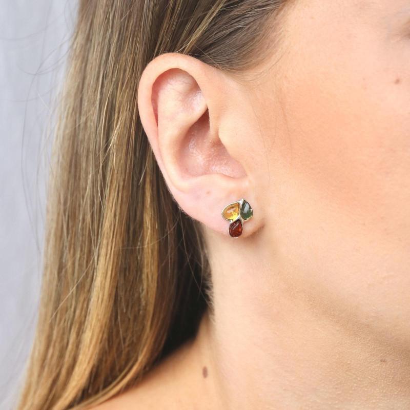 Boucles d'oreilles ambre multicolore/argent rhodié 925/1000