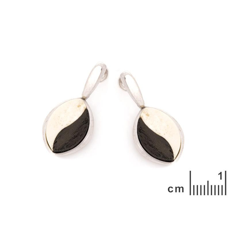 Boucles d'oreilles ambre et chêne/argent rhodié 925/1000