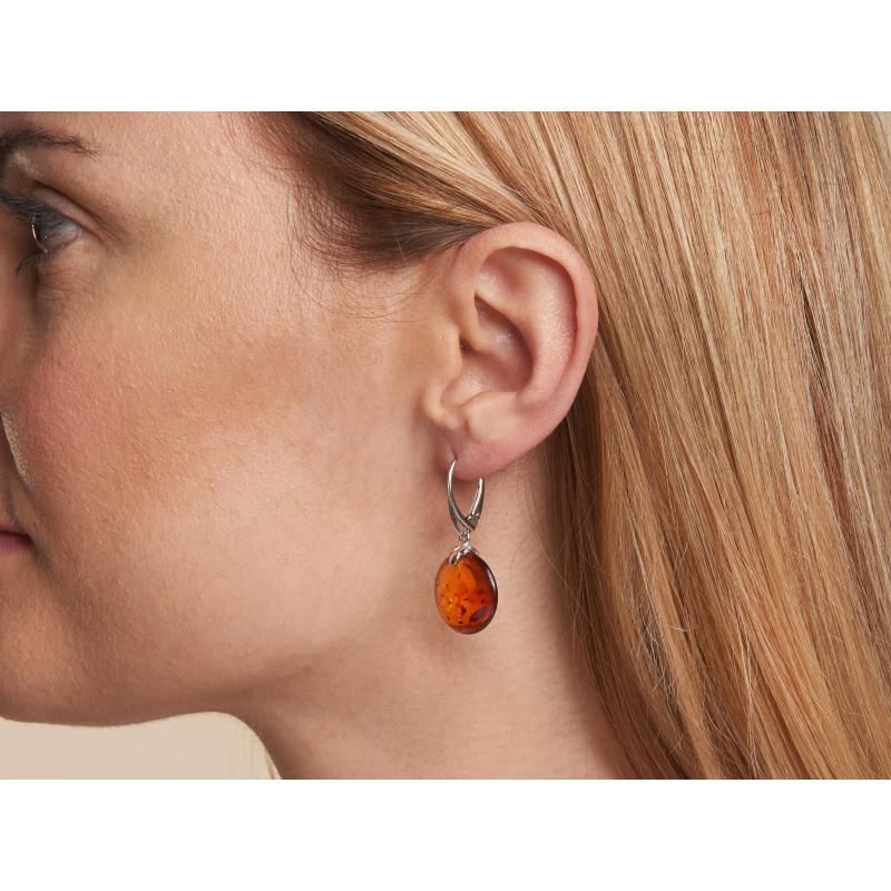Boucles d'oreilles ambre cognac/argent rhodié 925/1000