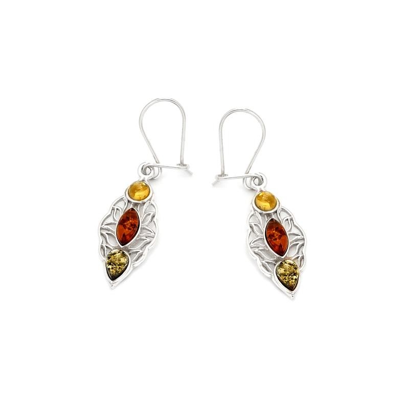 Boucles d'oreilles ambre multicolore/argent rhodié 925/1000