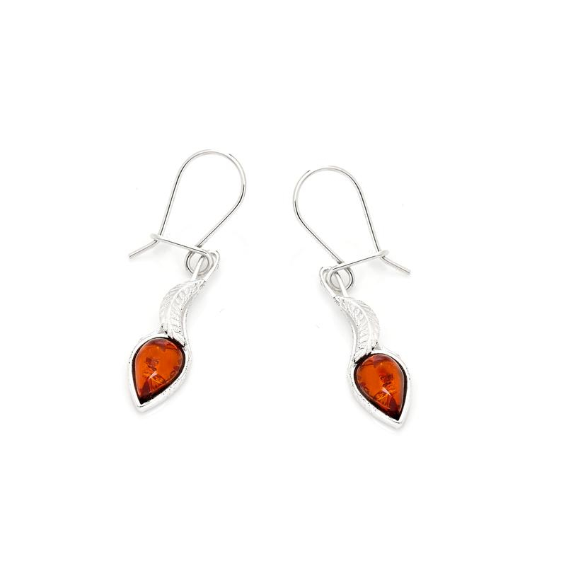 Boucles d'oreilles ambre cognac/argent rhodié 925/1000
