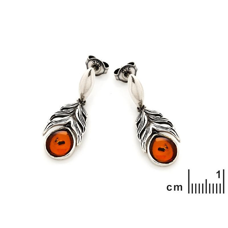 Boucles d'oreilles ambre cognac/argent rhodié 925/1000