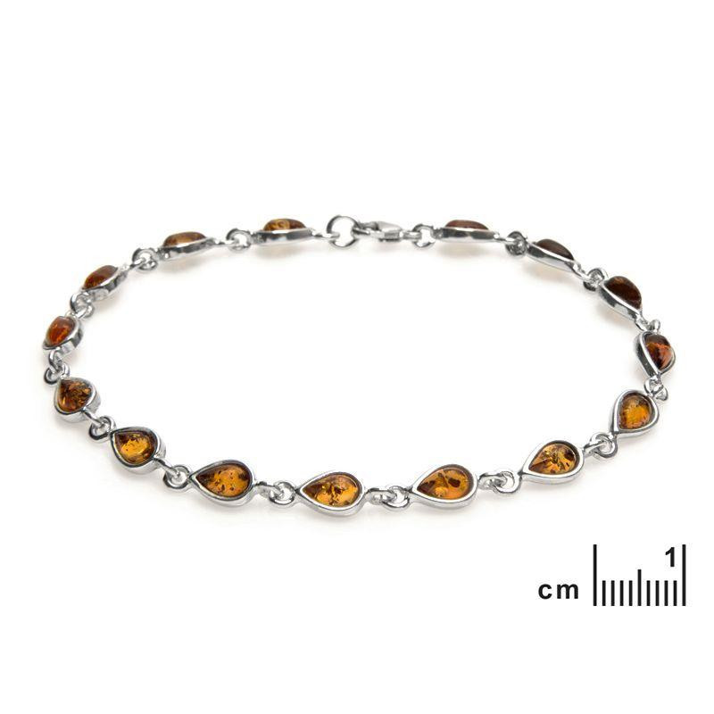 Bracelet 18+3cm ambre cognac argent rhodie 925/1000