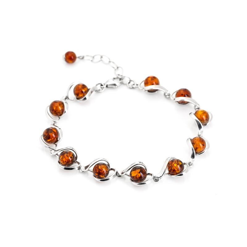Bracelet 18+3cm ambre cognac argent rhodie 925/1000