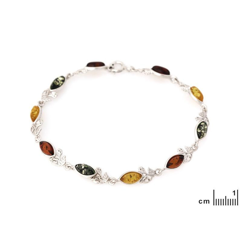 Bracelet 18+3cm ambre cognac argent rhodie 925/1000