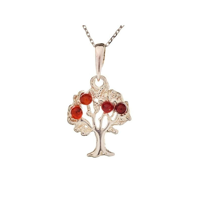 Collier argent rhodié 925/1000 Ambre Cognac