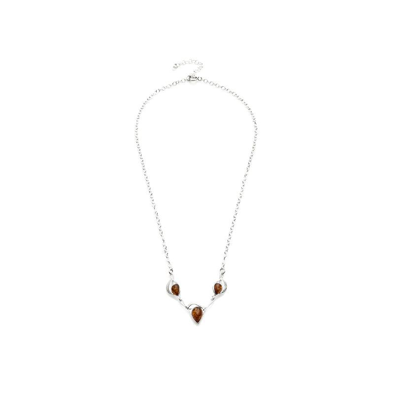 Collier ambre cognac/cerise argent rhodié 925/1000. Pendentif livré avec chaîne argent 925/1000.