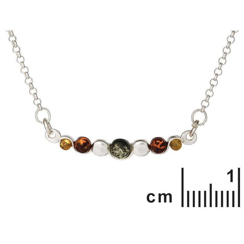 Pendentif ambre multicolore/cerise argent rhodié 925/1000. Pendentif livré avec chaîne argent 925/1000.