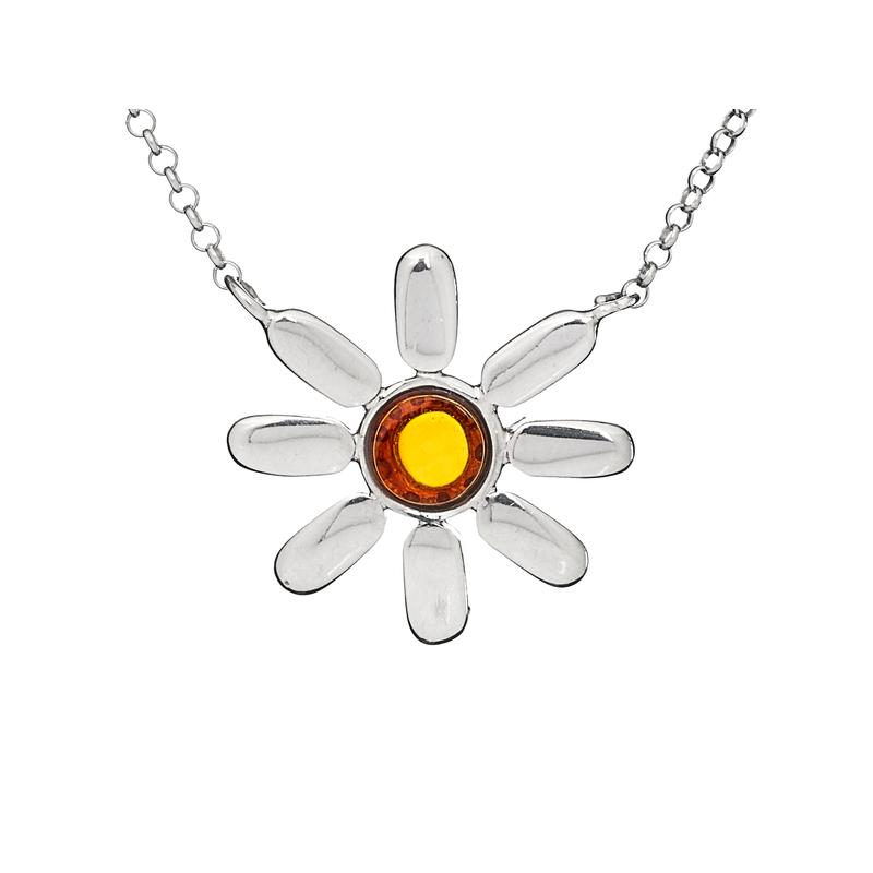 Pendentif ambre cognac/argent rhodié 925/1000. Pendentif livré avec chaîne argent 925/1000.