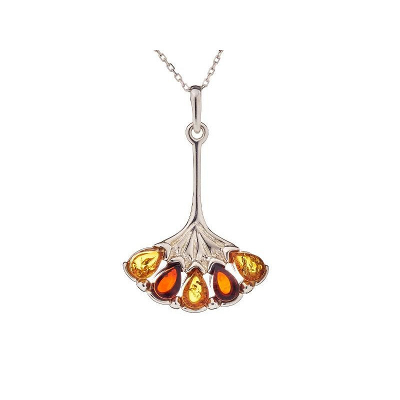 Pendentif ambre multicolore/cerise argent rhodié 925/1000. Pendentif livré avec chaîne argent 925/1000.