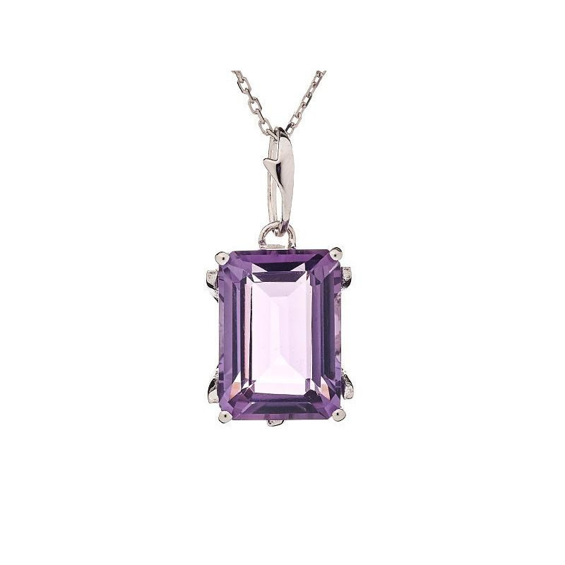 Collier 42 + 3 cm Amethyste argent rhodié 925/1000