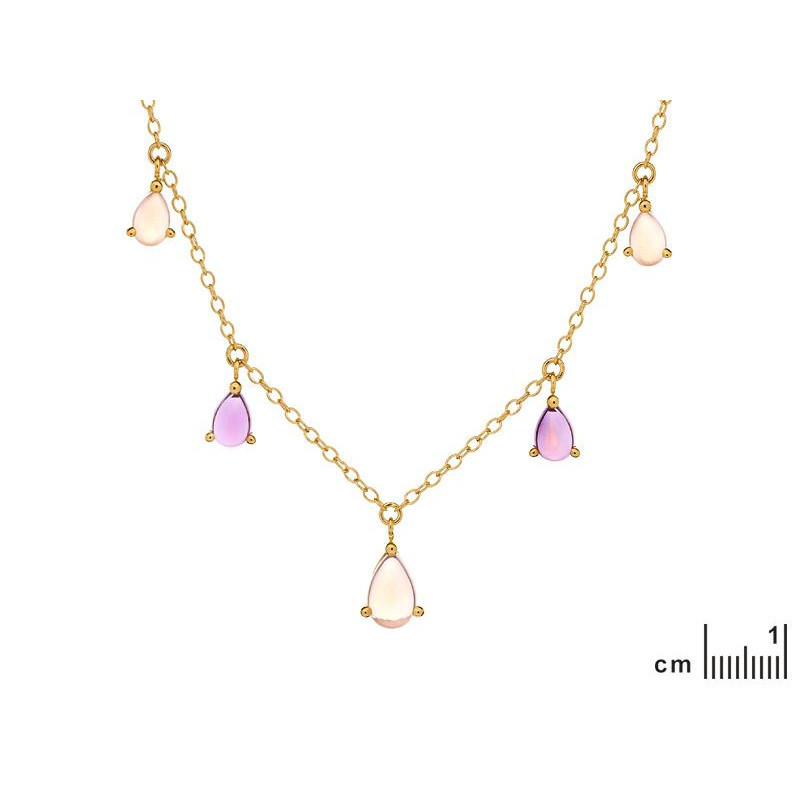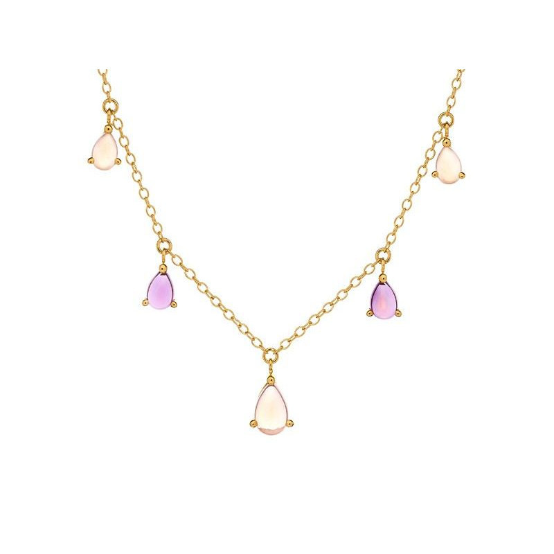 COLLIER ARGENT DORE AMETHYSTE ET QUARTZ ROSE