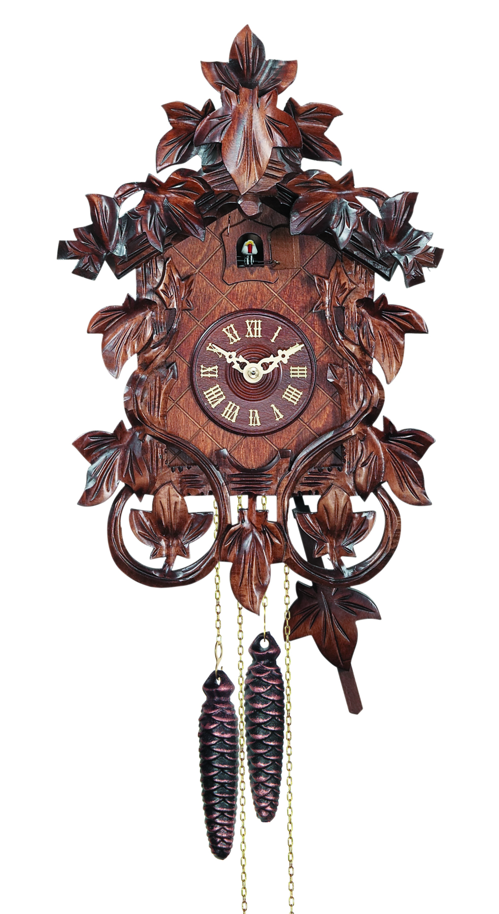 Le poids de droite fait fonctionner le mouvement, celui de gauche anime le coucou avec son chant.