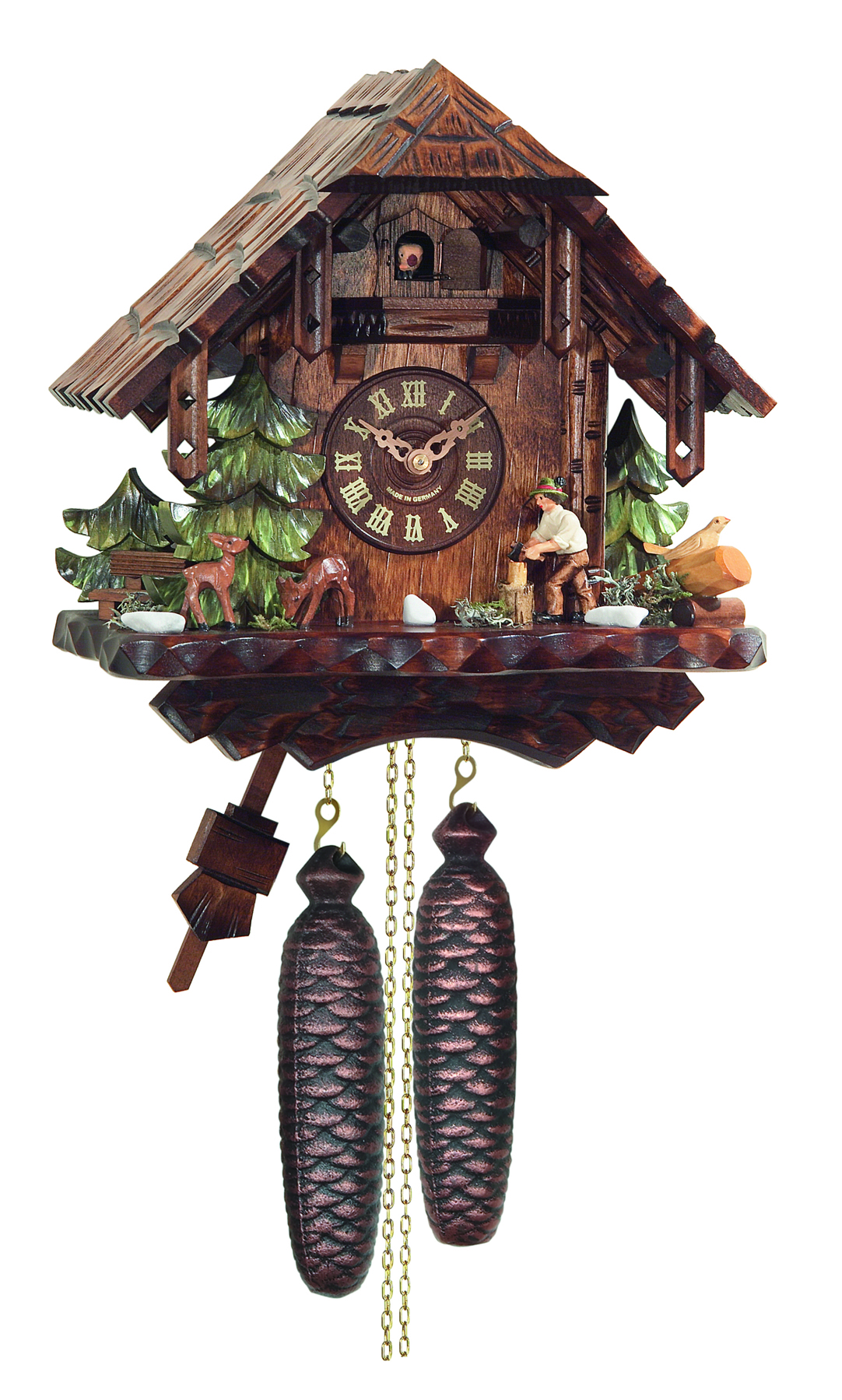 Le poids de droite fait fonctionner le mouvement, celui de gauche anime le coucou avec son chant