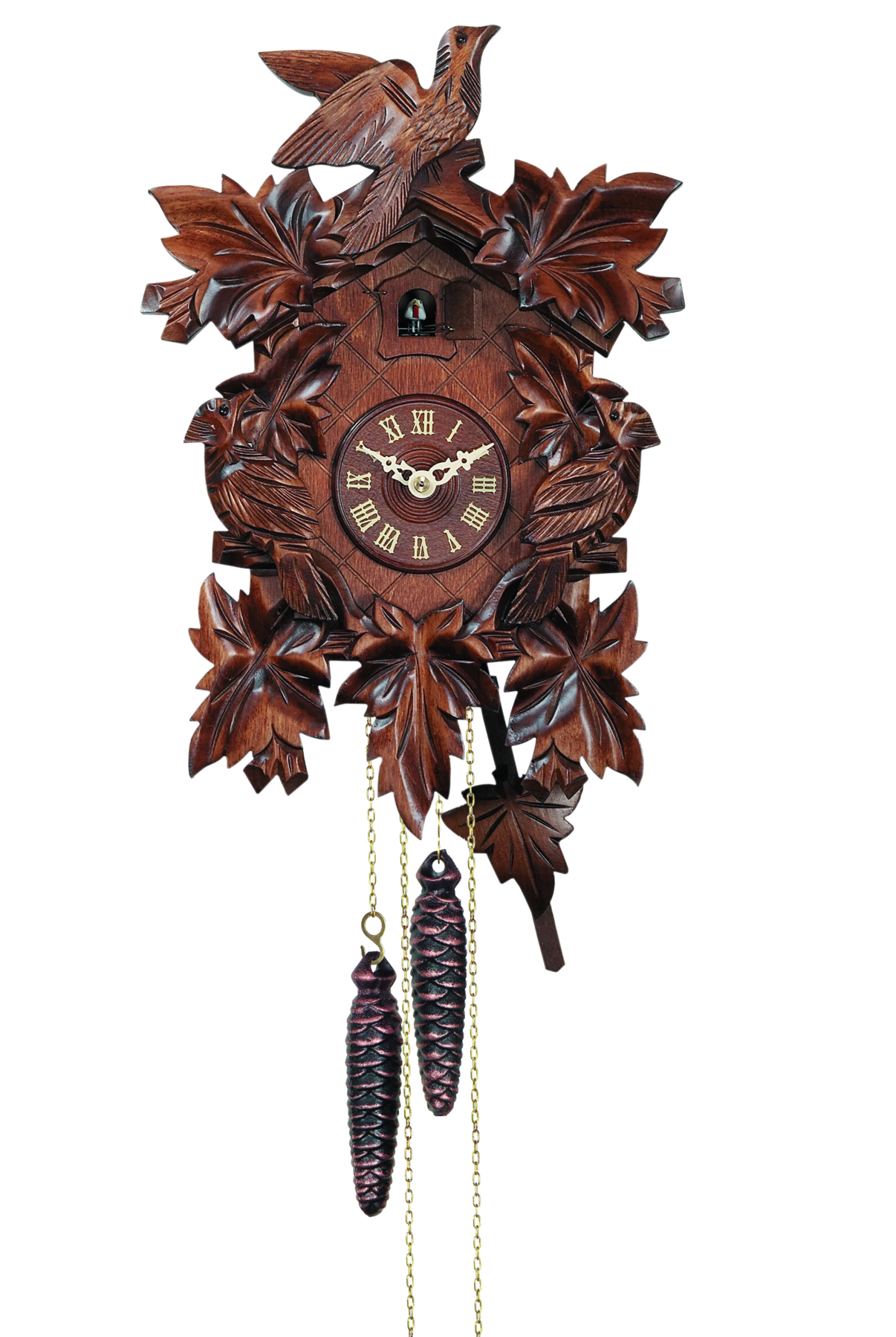 Le poids de droite fait fonctionner le mouvement, celui de gauche anime le coucou avec son chant