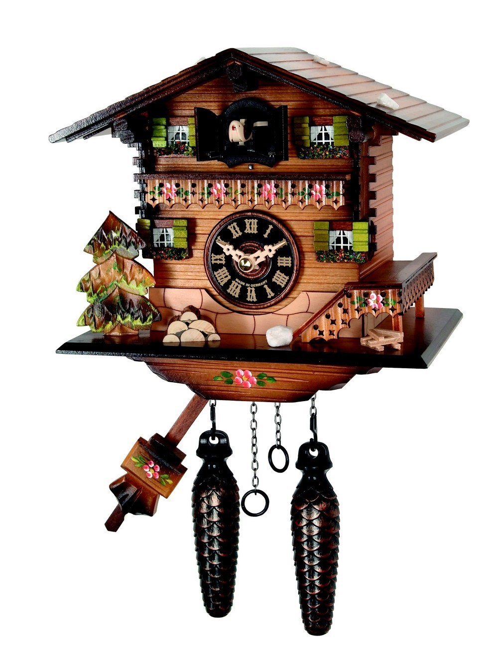 Le chalet et le coucou sont en bois, les décors peints à la main