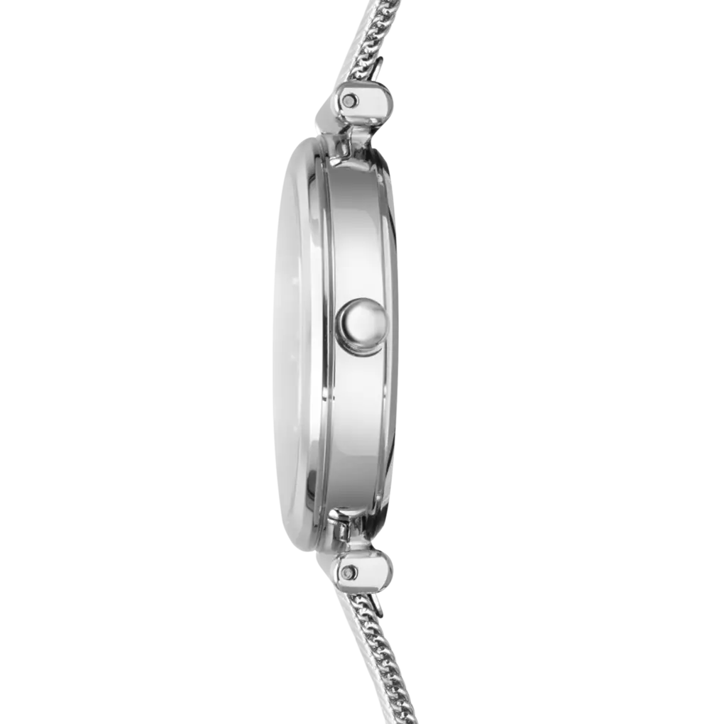 Boîtier : acier inoxydable argent, diamètre 29mm, épaisseur 6,85mm