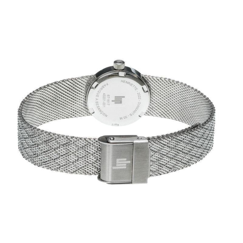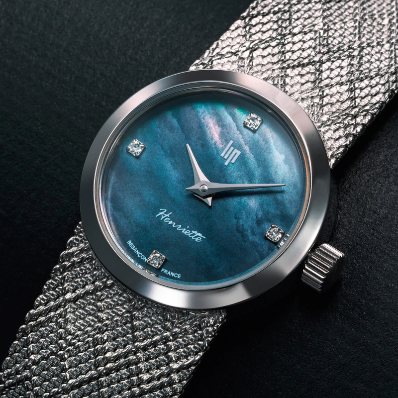 La collection Henriette de LIP, ce sont de petites montres dames empreintes de charme. Ce modèle s'apparente plus à un véritable bijou avec son fond cadran nacré et ses 4 diamants véritables qui marques les heures ( 3,6,9,12).