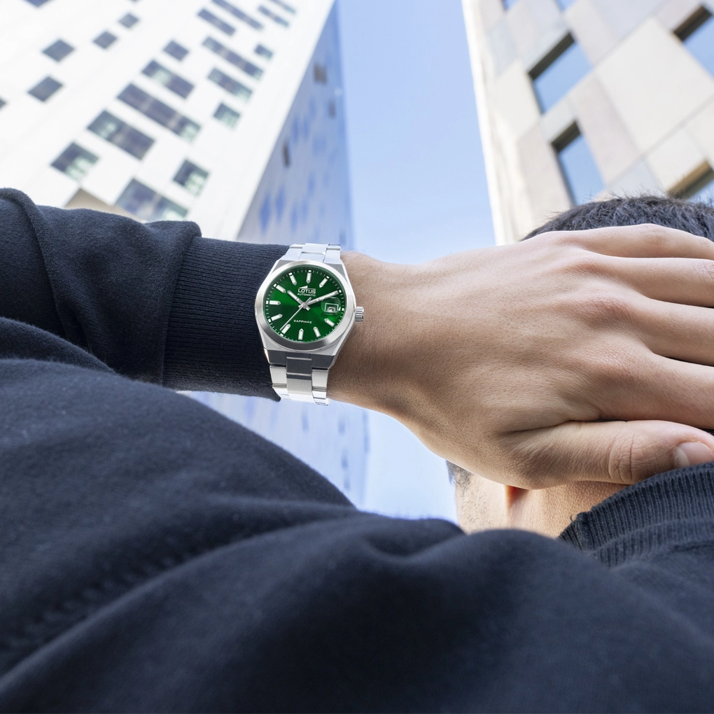 Son mouvement automatique se recharge naturellement au rythme de votre poignet. Chaque geste alimente le mécanisme, offrant une expérience horlogère authentique et vivante.