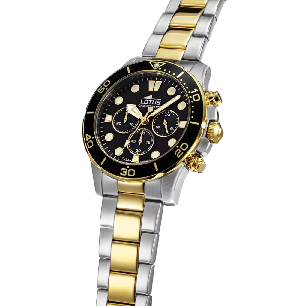 acier inoxydable noir et dorée, diamètre de 44,5 mm, épaisseur 12,3mm