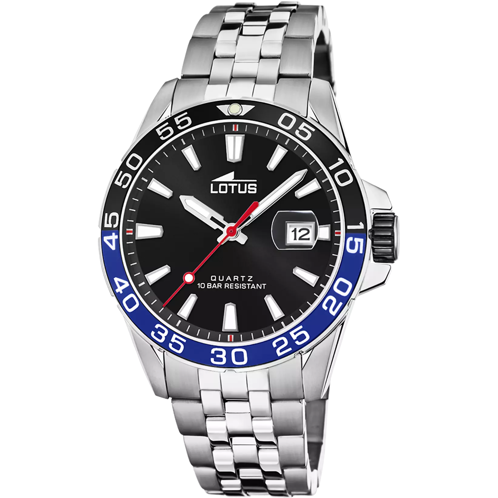 Deux aiguilles argent et aiguille seconde rouge, dato à 3h