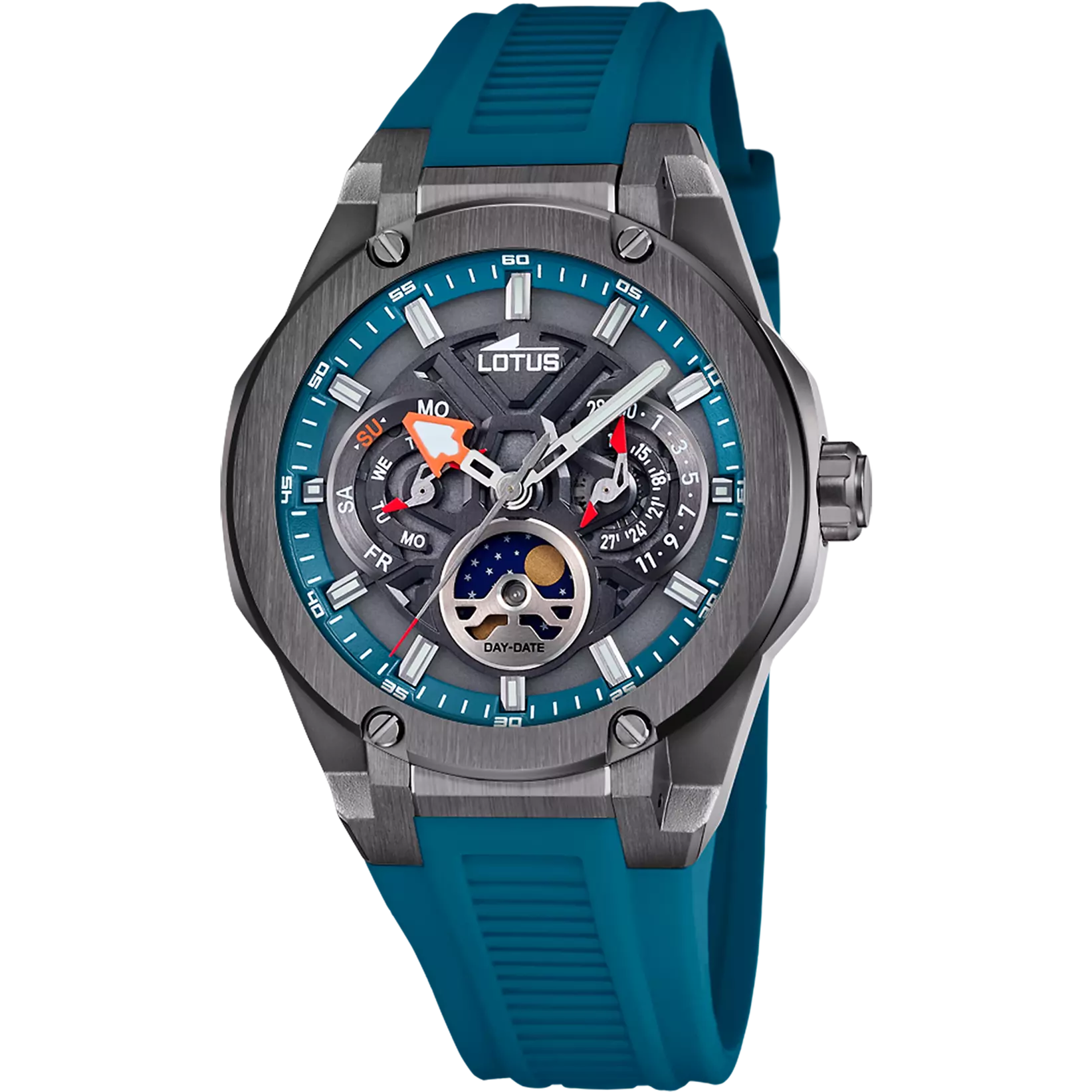 La Lotus Vortex est bien plus qu'une simple montre, c'est une piéce de caractère concue pour les personnes déterminées et dynamiques. La Lotus Vortex est une montre chronographe masculine au designe sportif et moderne. Pensée pour les hommes actifs, elle assoçie robustesse, précision et style dynamique, avec un cadran technique et une forte présence au poignet. Son boîtier en Acier inoxydable et sont bracelet en silicone offrent confort et résistançe pour un usage spotif comme quotidien.